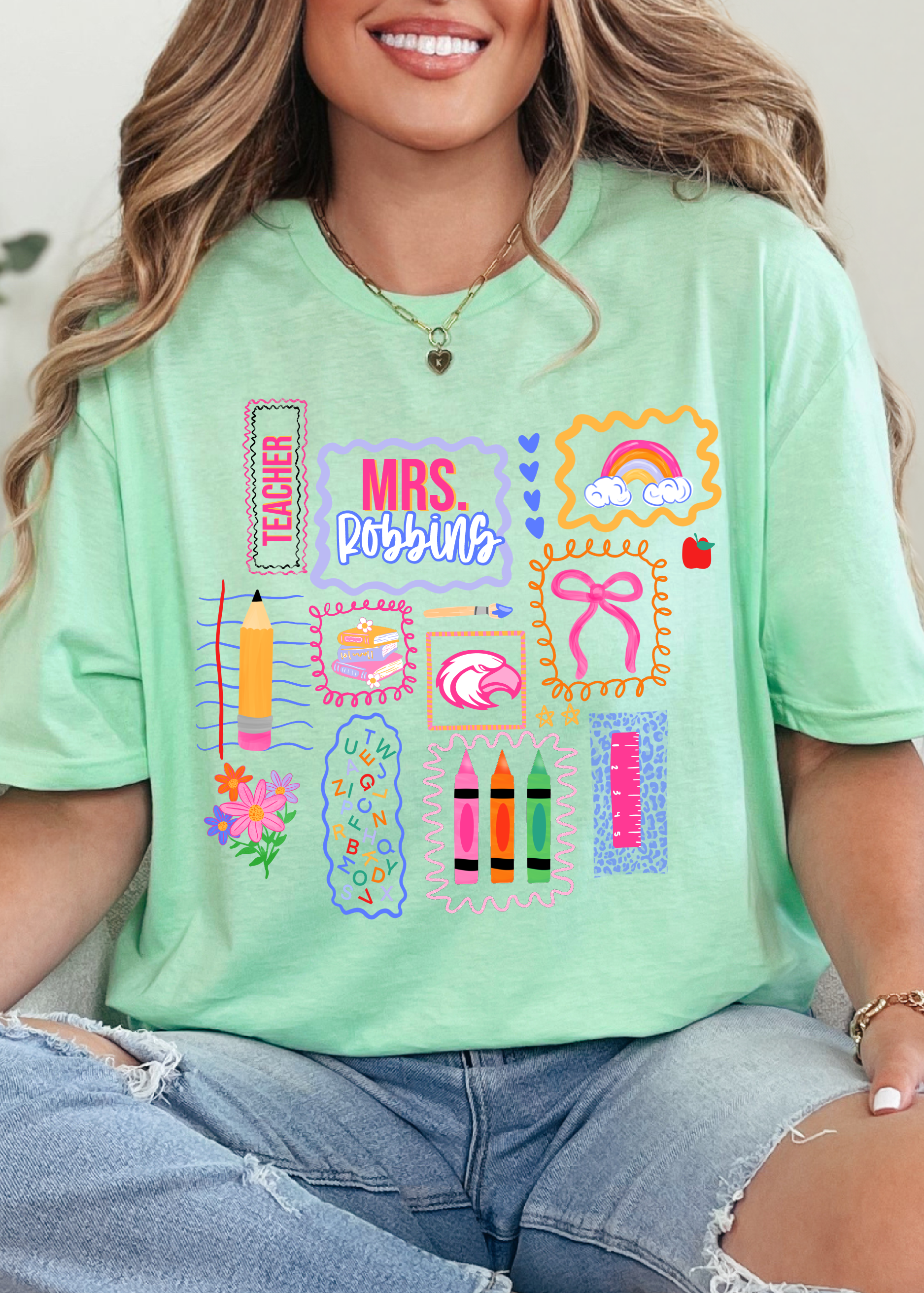 Colorful Doodle School Name Tee